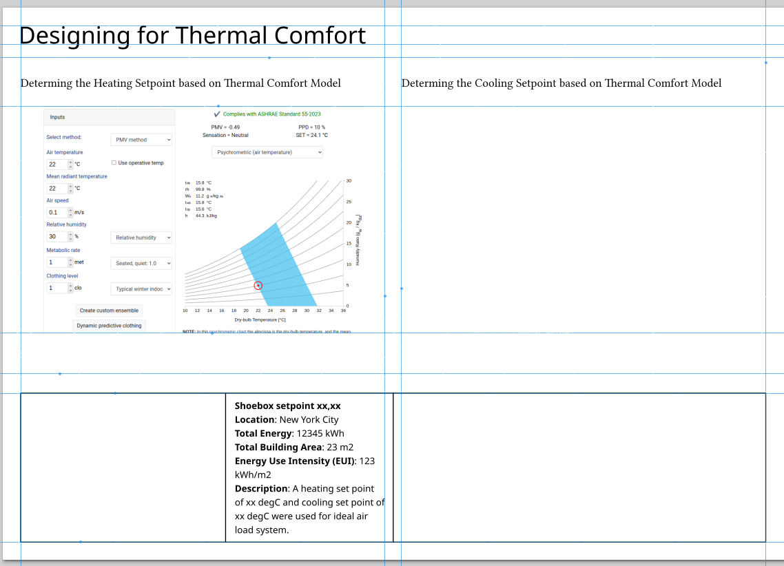 Print screen the CBE thermal comfort tool results and paste it into the template.