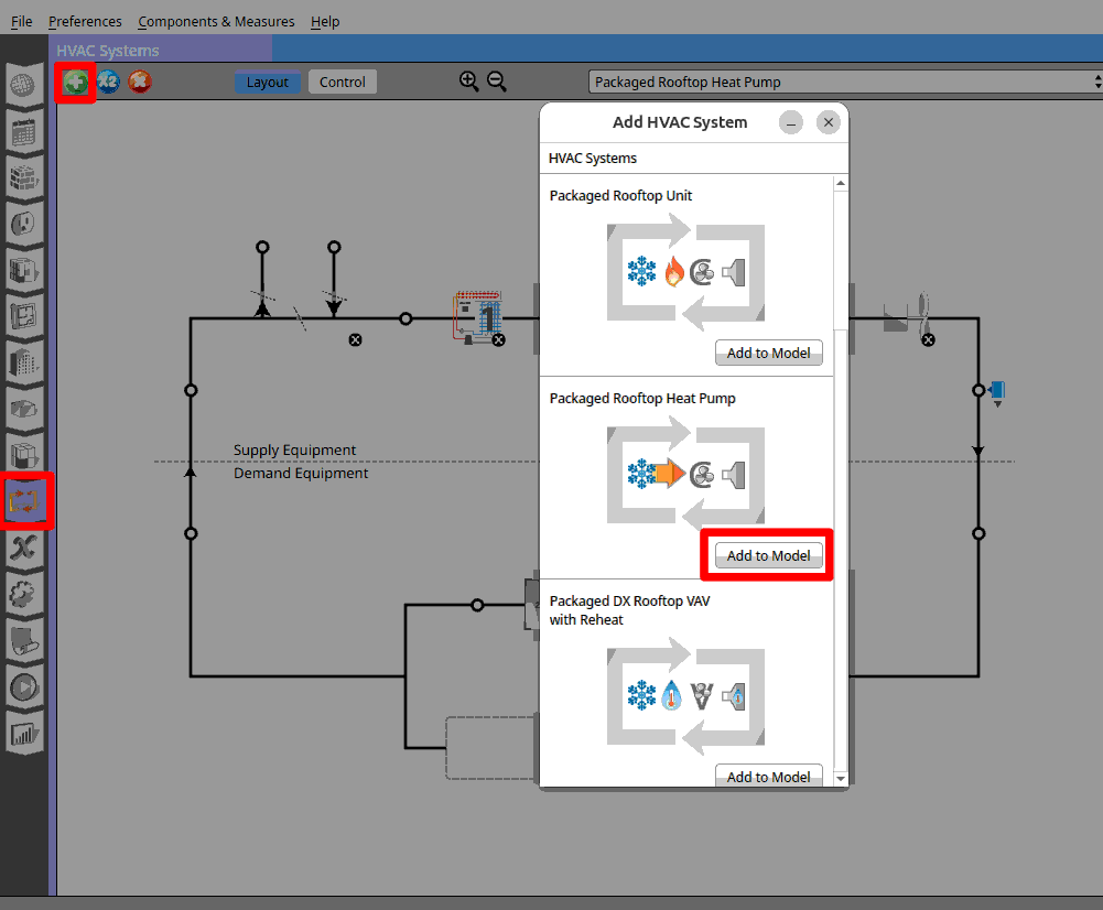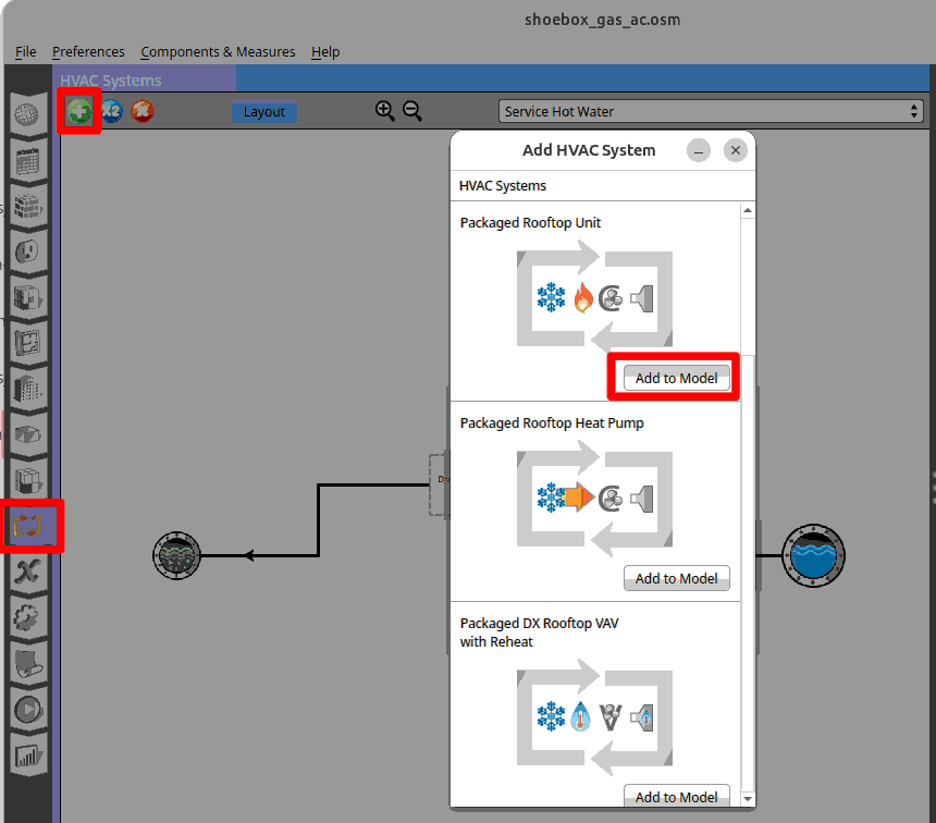 Go to HVAC systems. Click on the green ‘+’ icon. Choose the first HVAC system on the list ‘packaged rooftop unit’.
