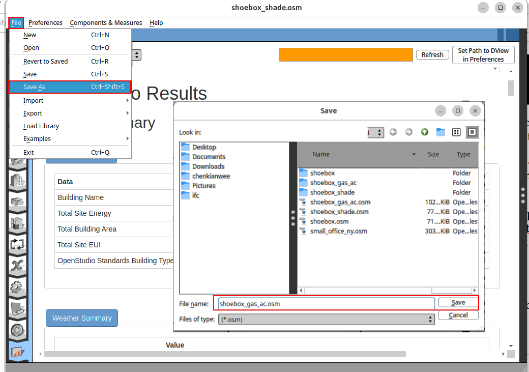 Save the osmod file as ‘shoebox_gas_ac.osm’.