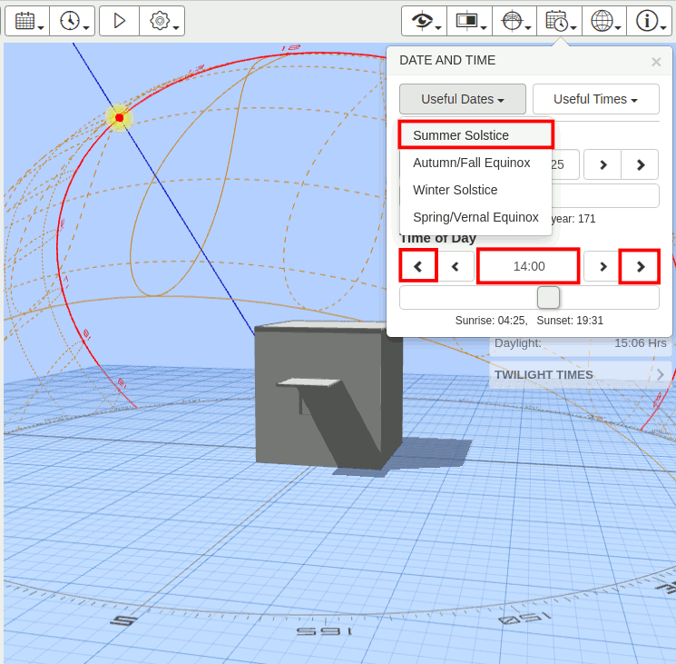 Go to the 3D sun path web app. Change your Geographic location to New York: