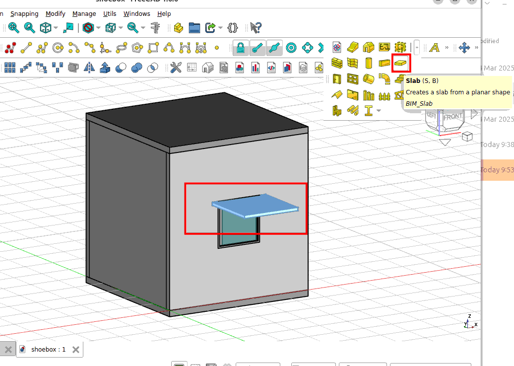Load the shoebox_shade.obj file that was exported from FreeCAD.