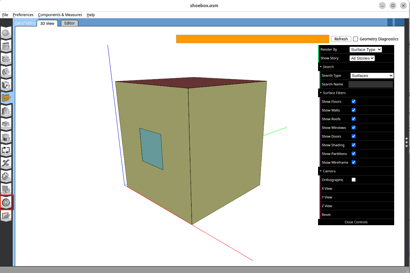 Follow the instruction in workshop 2 shoebox modeling part 3 and workshop 2 shoebox modeling part 4 to convert it to osmod file and run a simulation.