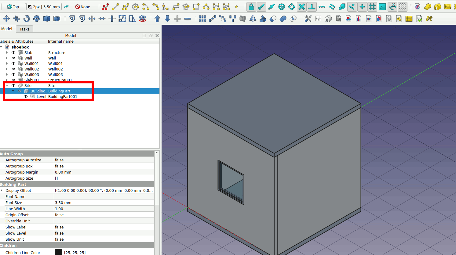 Now it is time to organize your model. Click on the Site, Building and Level icons to create the respective objects.