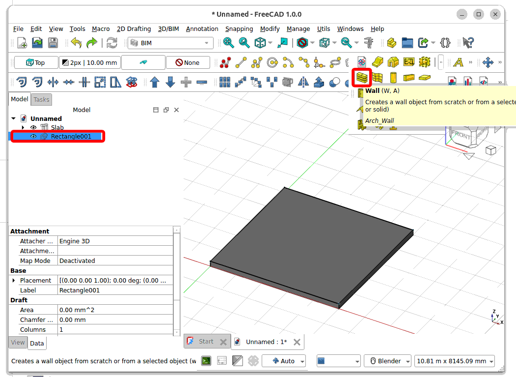2. Select the rectangle and click on the Slab tool on the workbench. A floor slab is created.