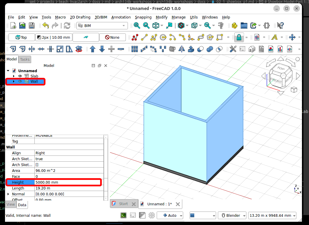 Select the created ‘Wall’. Change the ‘Align’ parameter to ‘Right’ so that the wall are within the slab.