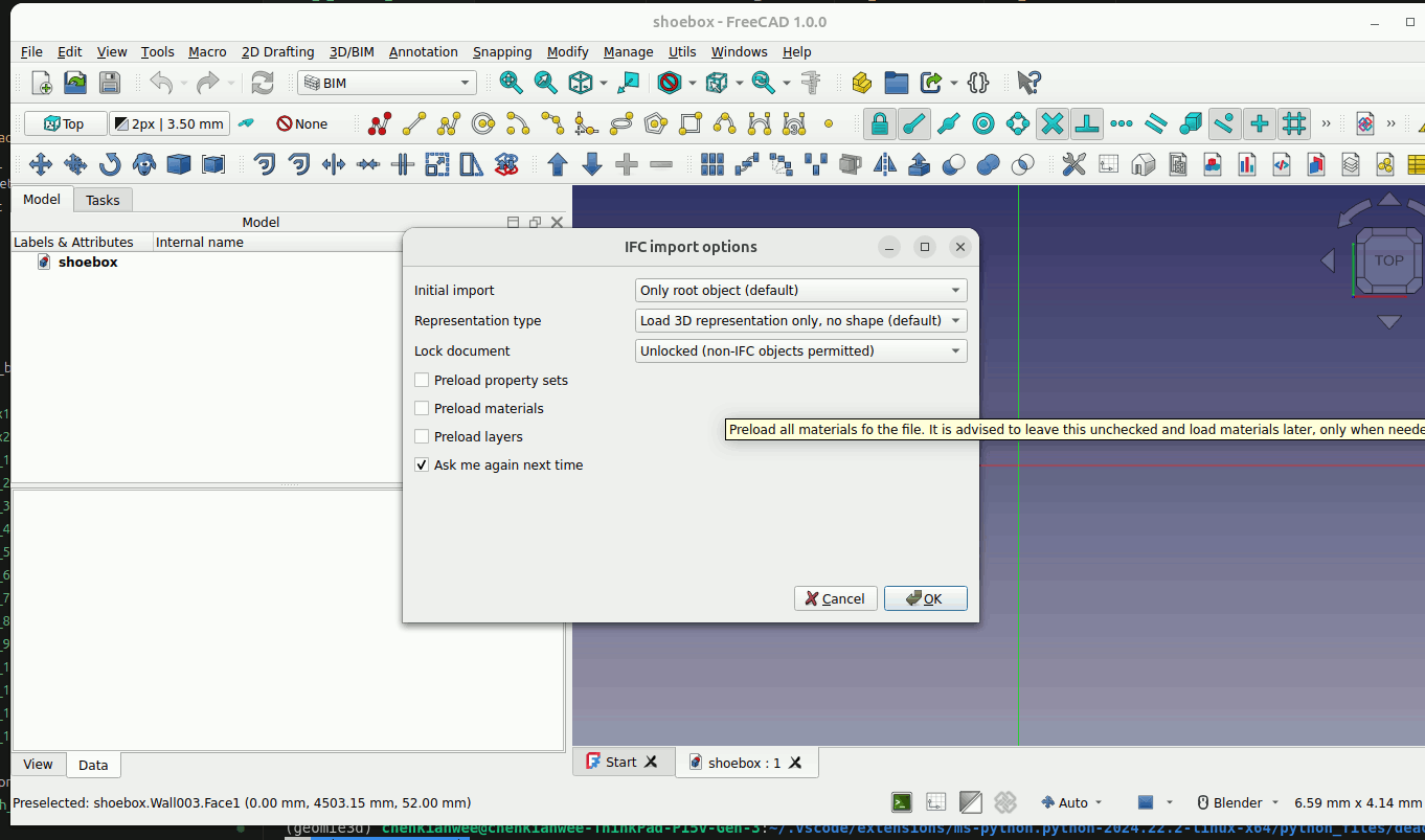 2. Check the exported file by opening it in FreeCAD again. Go to File -> Open