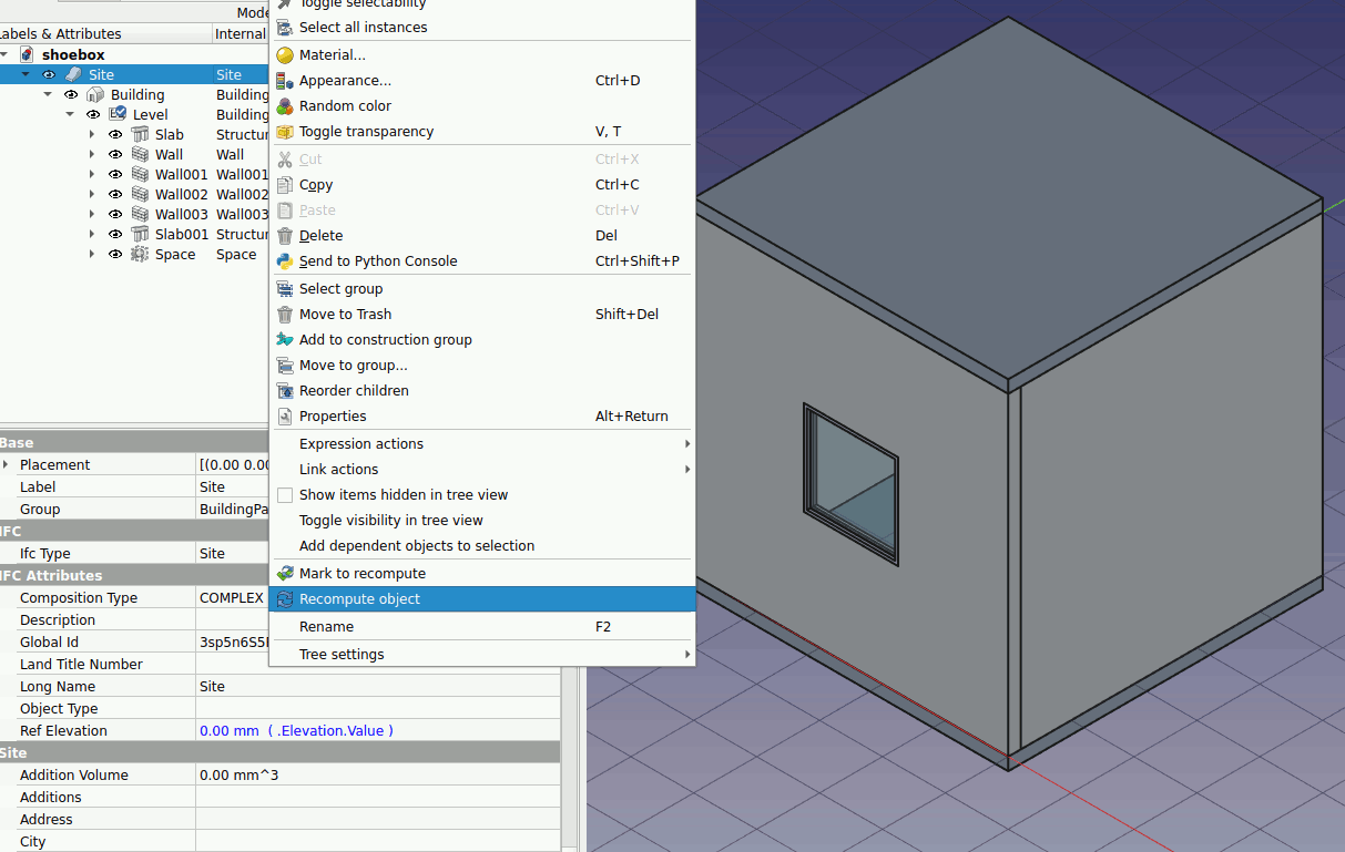 8.Right click -> Site -> Recompute object. Turn on the visibility of all the object. Your model should look like this