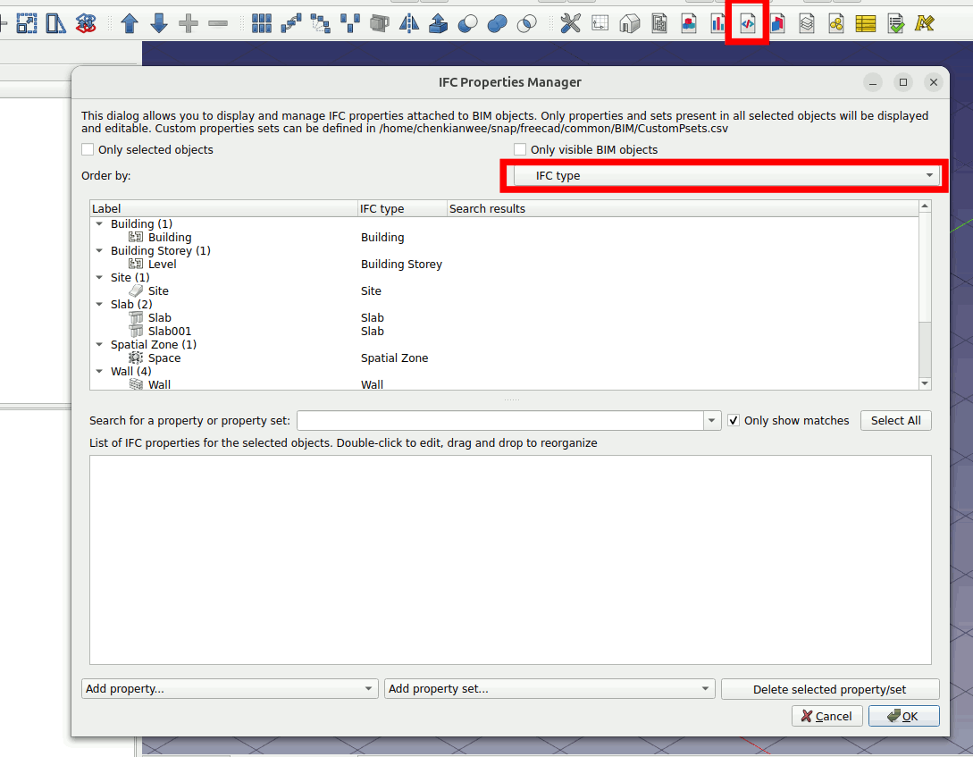 Click on Manage IFC Properties ... At the window choose the Order by to IFC type.