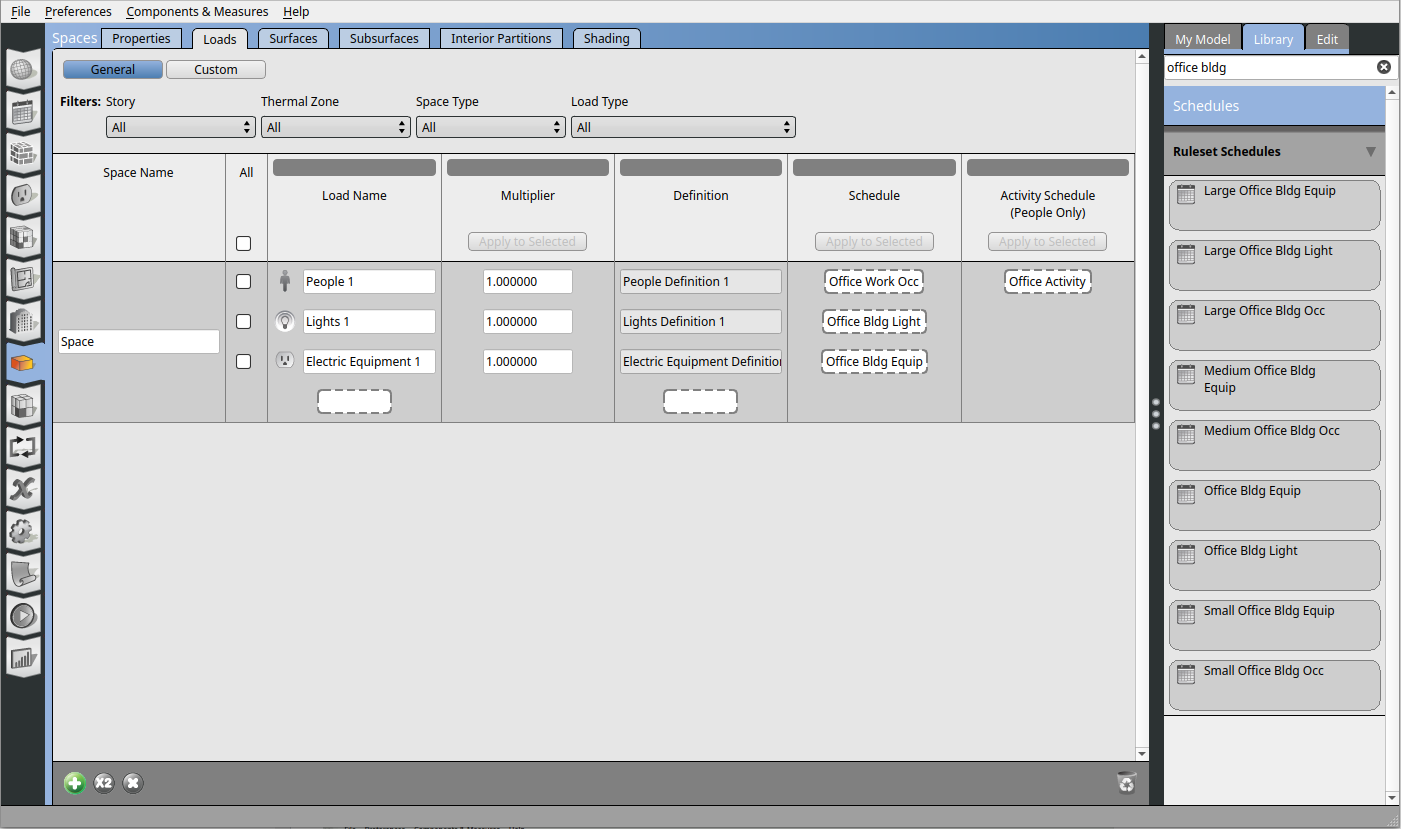 Do the same for Activity Schedule -> Office Activity, Lights -> Office Bldg Light, Electric Equipment -> Office Bldg Equip.