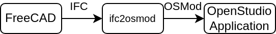After some initial investigation, I was able to identify the open standards and open-source software required for the development. The two open standards used are Industry Foundation Class (IFC) and OpenStudio Model (OSMod). The open-source software used are FreeCAD for authoring/modifying IFC and OpenStudio SDK and OpenStudio Application for executing OSMod for building energy simulation. There are currently no reliable tool to do the conversion from IFC to OSMod. OpenStudio Application has an IFC import function through the BIMServer. It requires users to export IFC from FreeCAD, set up a running BIMServer, input the IFC to the BIMServer, and eventually import it using the OpenStudio Application. There are too many steps involve and most importantly the import function is not actively maintained. As a result, I decided to write my own command line conversion tool, ifc2osmod, using two Python libraries, ifcopenshell and OpenStudio SDK. For the conversion to work well, users will have to learn to model the IFC for the conversion. It requires the IFC model to be constructed in specific ways such as having a defined IFC Spatial Thermal Zone and custom IFC properties that specify the envelope construction. With this setup, I am able to setup a generic IFC to OSMod workflow.