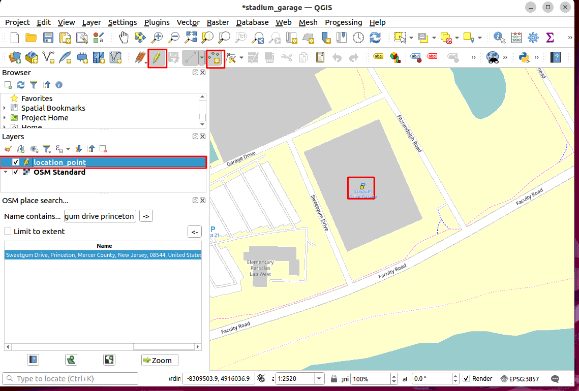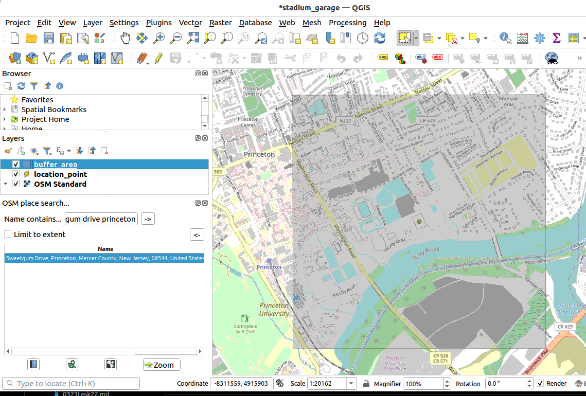 We are particularly interested in the Stadium Garage waiting area. So search for “sweetgum drive princeton” on the OSM place search.