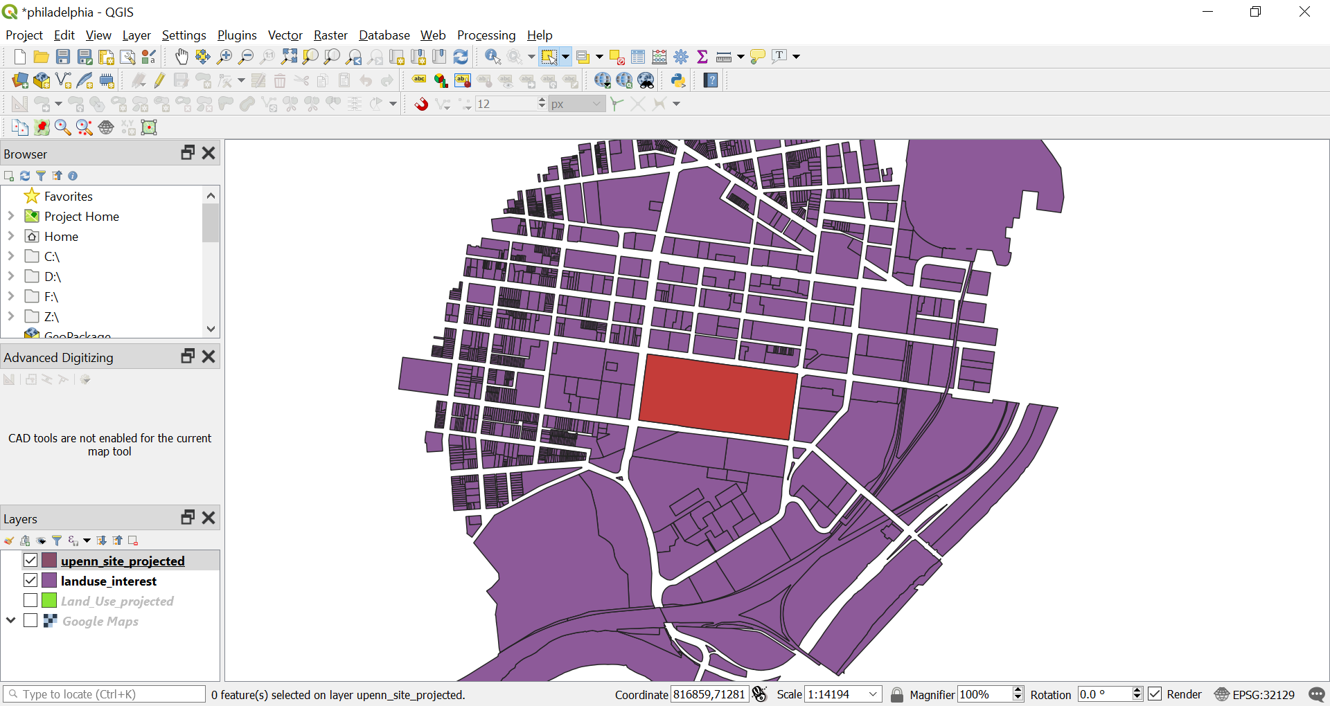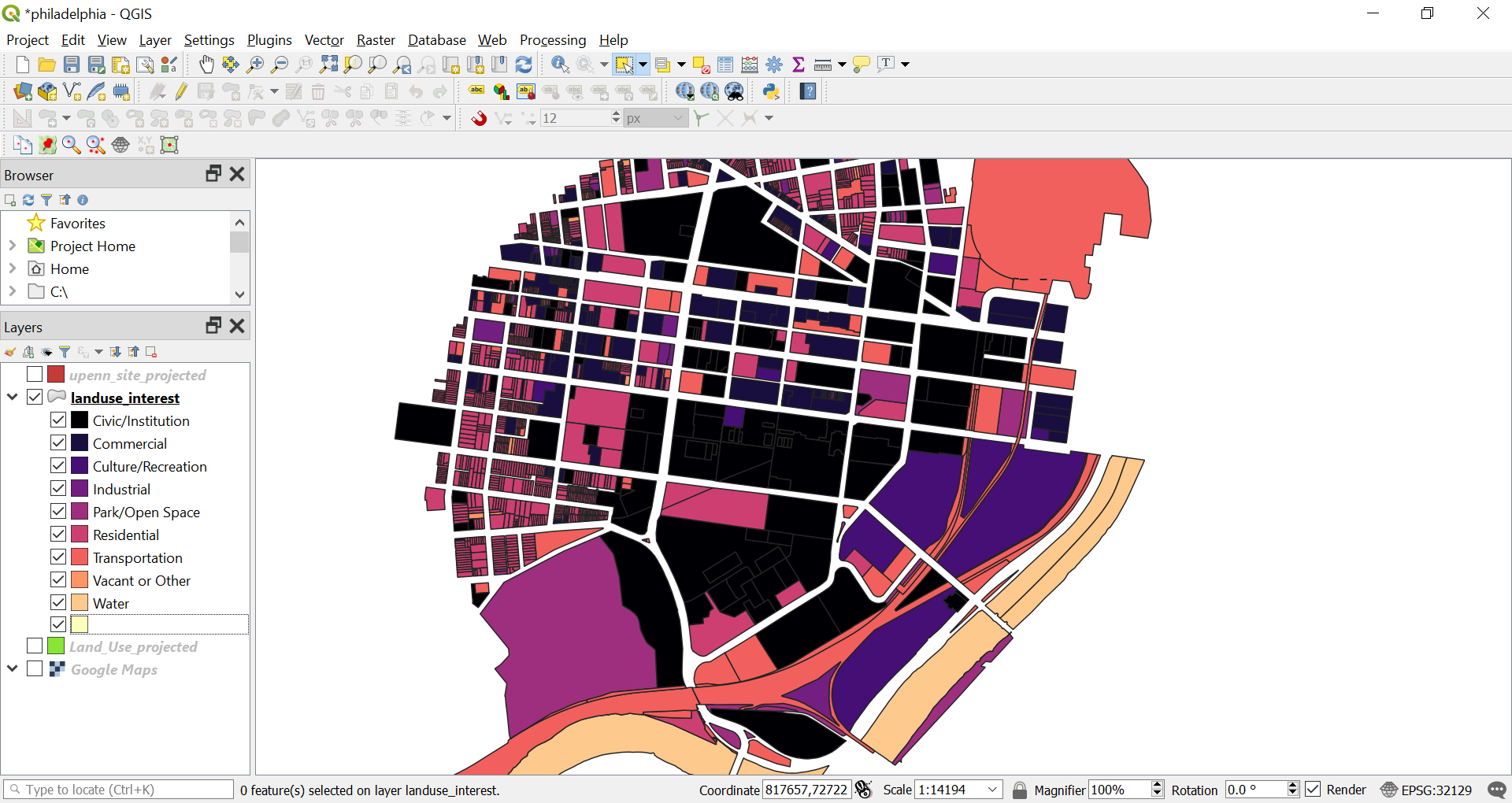Once processed we can see the layer. Turn off the “Land_Use_projected” layer.