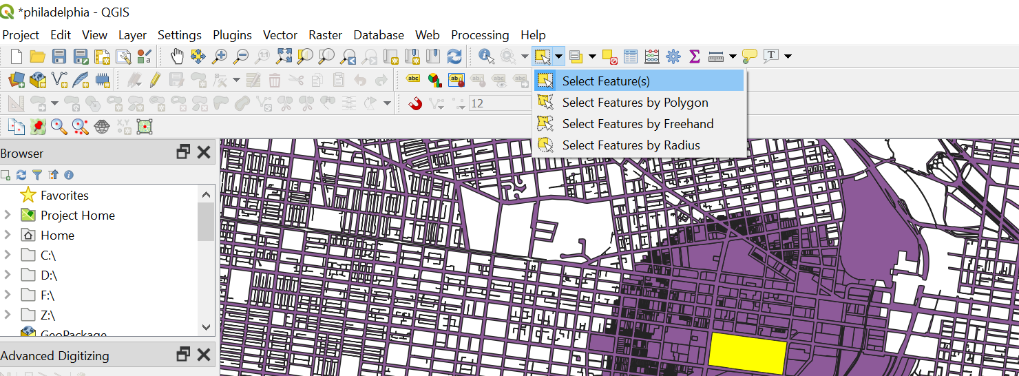 Click on the “Select Feature(s)” function.