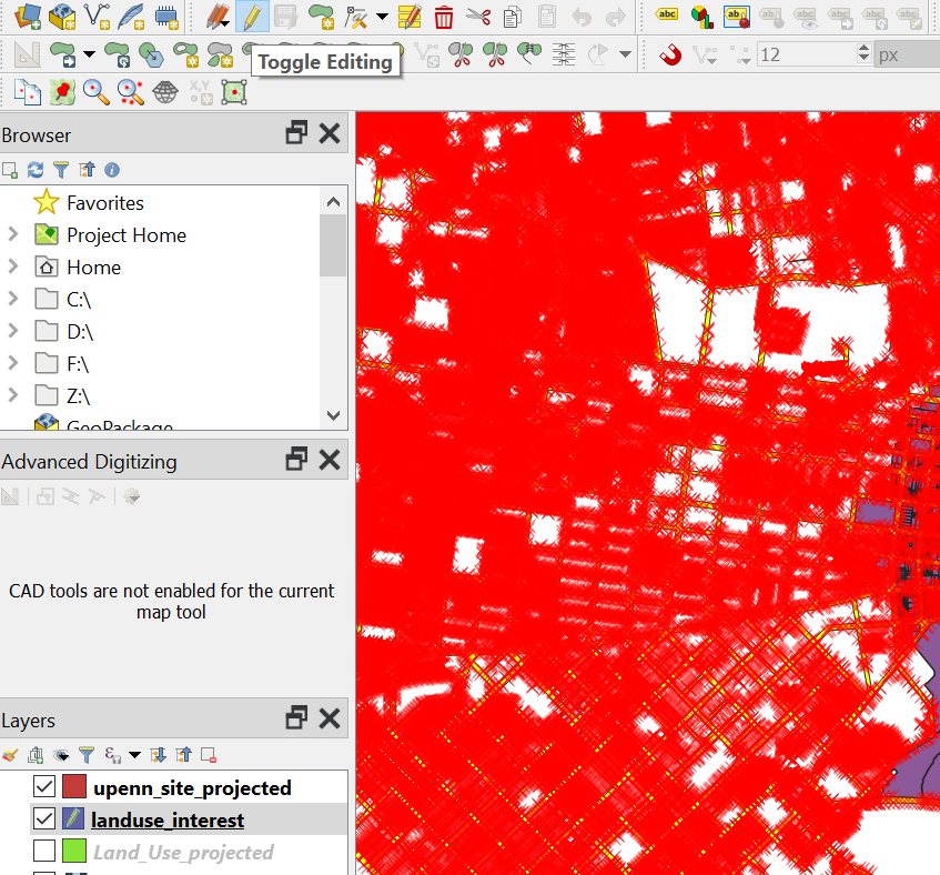 Click on Landuse_interest layer to make it the active layer. Click on the “Toggle Editing”.