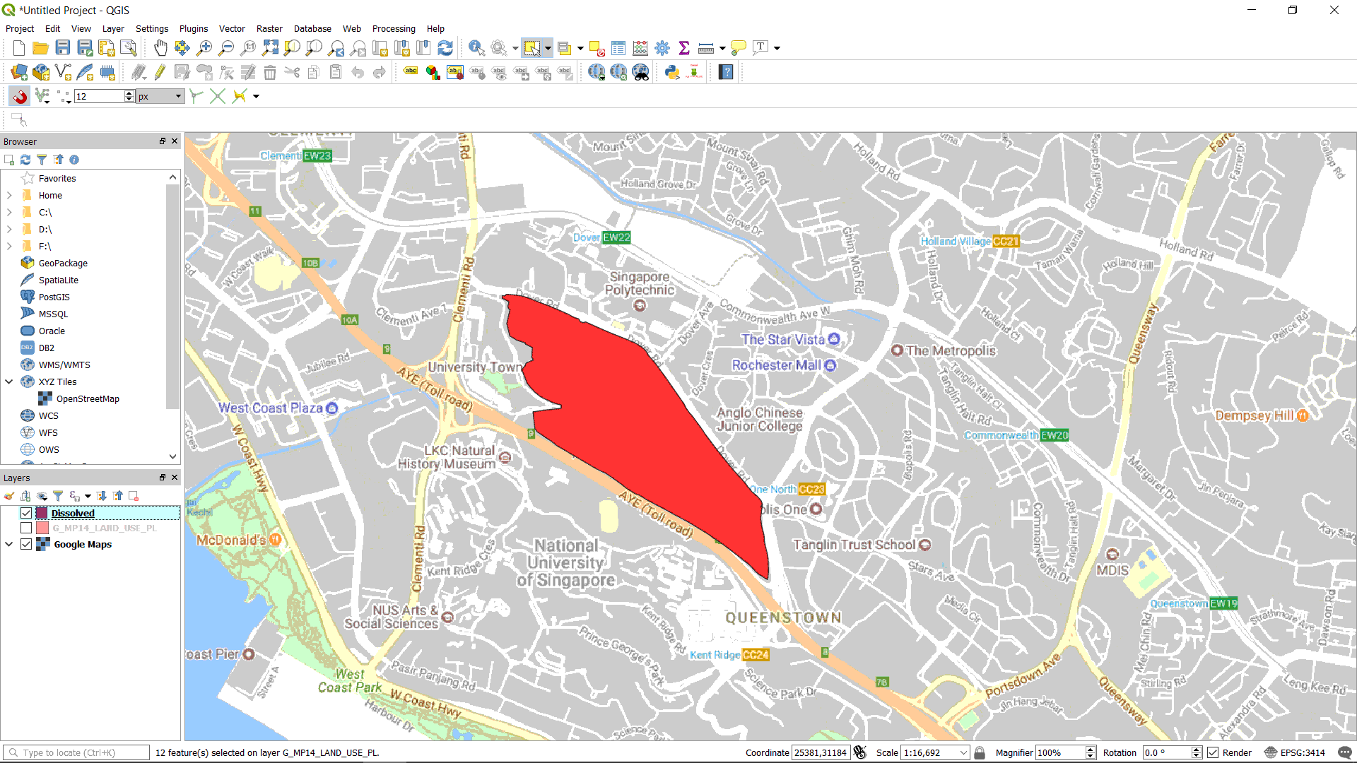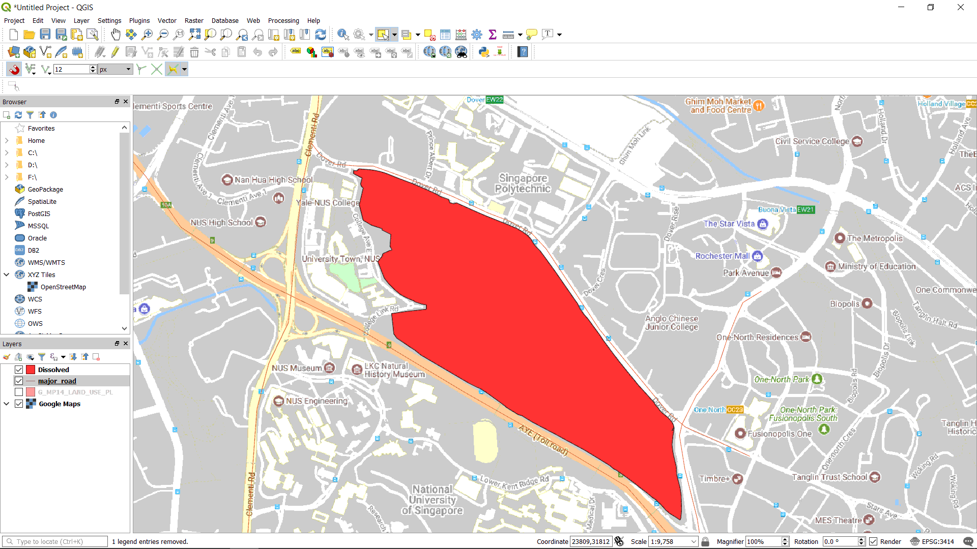 Zoom into the site again. Mark out the major roads and label them for the site map. Draw and trace the major roads around the site (Drawing in QGIS), adjust your snapping options as accordingly (Turn on Snapping). Create an attribute called “name” and fill in the road name when tracing the roads (Create Attribute).