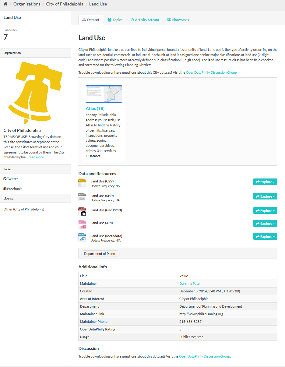 Once you click on Land Use you will be able to see a list of meta data on about the data set.