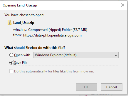 Once clicked, you will be downloading the SHP file of the Land Use data.