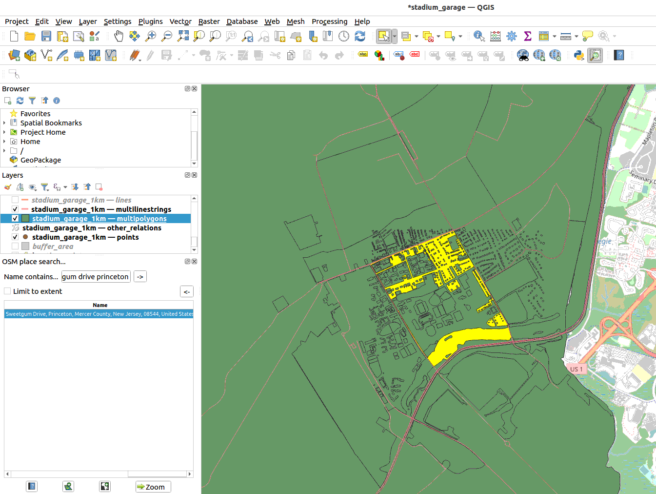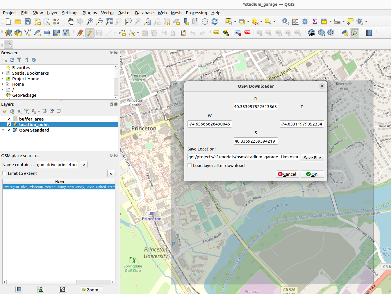 Once you click on it, choose the area of your interest and it will automatically grab the related data from OSM. Do not automatically load the layers into canvas. Do a manual import to control the visualization.