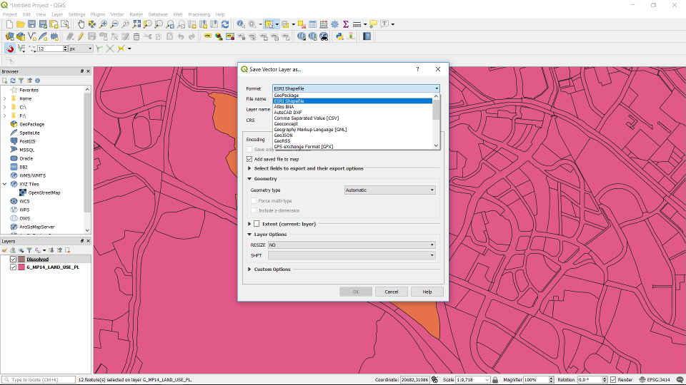 Choose the ESRI Shapefile. You can choose many other formats depending on your needs. Other common formats include geopackage, geojson and dxf.