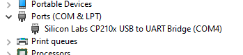 Connect the HUZZAH32 board to your computer. Go to Device Manager. You should be able to see under Ports (COM & LPT) - Silicon Labs CP210x USB to UART Brigdge (COMx). Remember the COM number ‘COM4’ in my case.
