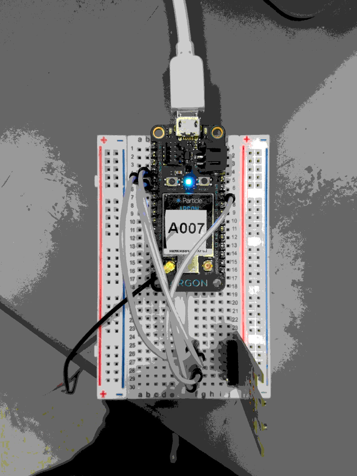 Connect the Argon and Wind Sensor onto the breadboard as shown in the figures.